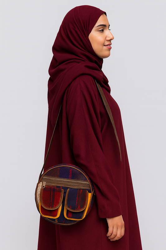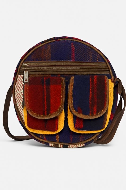حقيبة دائرية يدوية الصنع من الصوف الطبيعي