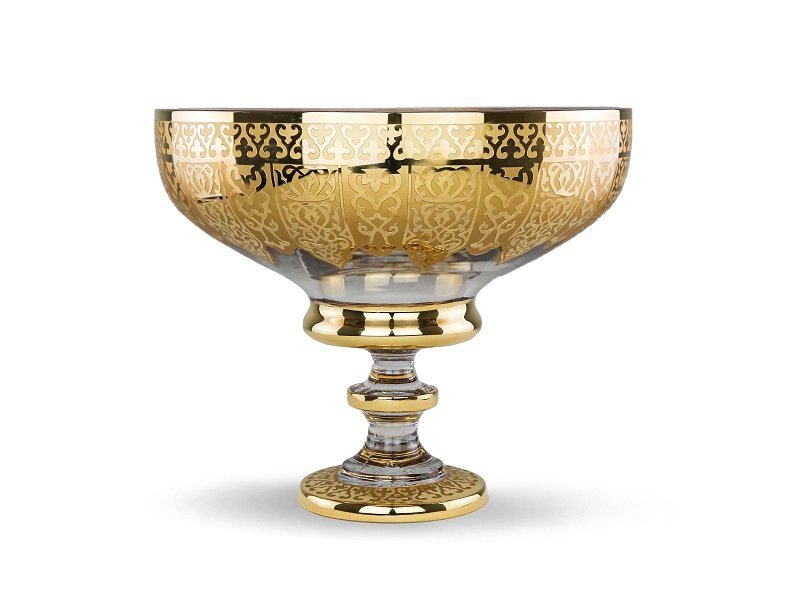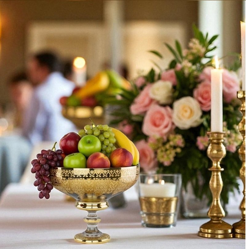 طبق الفواكه بتصميم دايا، بتصميمه الخاص والفريد، يحل هذه المشكلة. هذا الطبق مصنوع من كريستال بنسبة 24% ويأتي بأبعاد 20*30 سنتيمتر، مما يسمح له بسهولة باستيعاب أنواع مختلفة من الفواكه. كما أن التصميم المزخرف بالذهب عيار 12% الهولندي يضفي لمسة أنيقة وفاخرة على حفلاتكم.