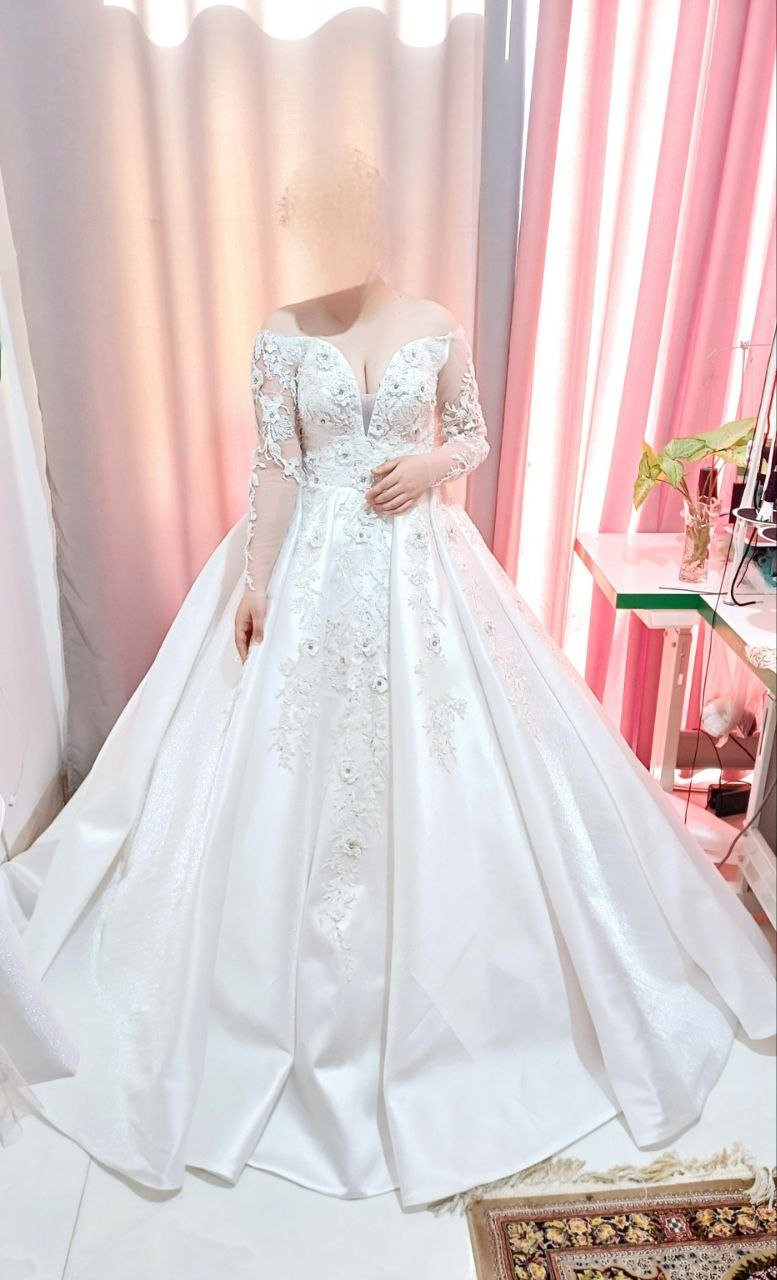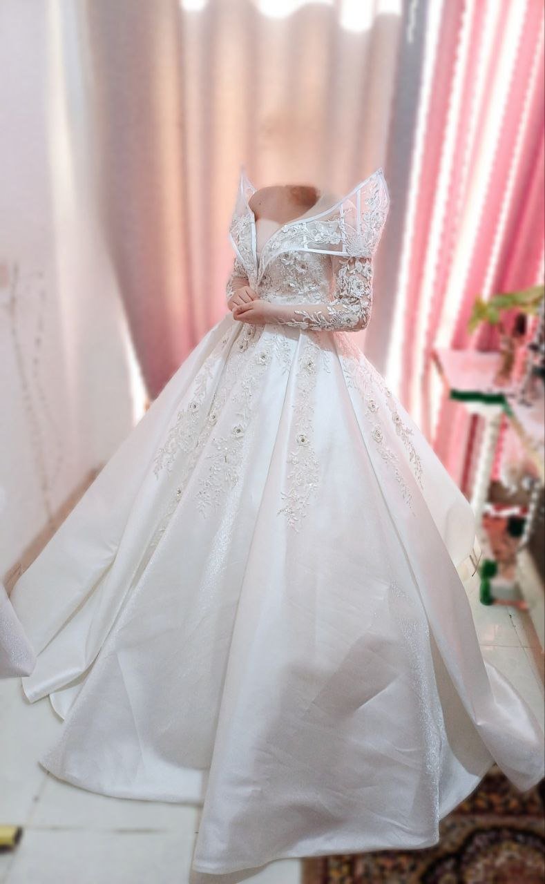 فستان زفاف أنيق وفاخر للغاية. فستان مميز لليلة الزفاف بتطريز دقيق من الداخل والخارج