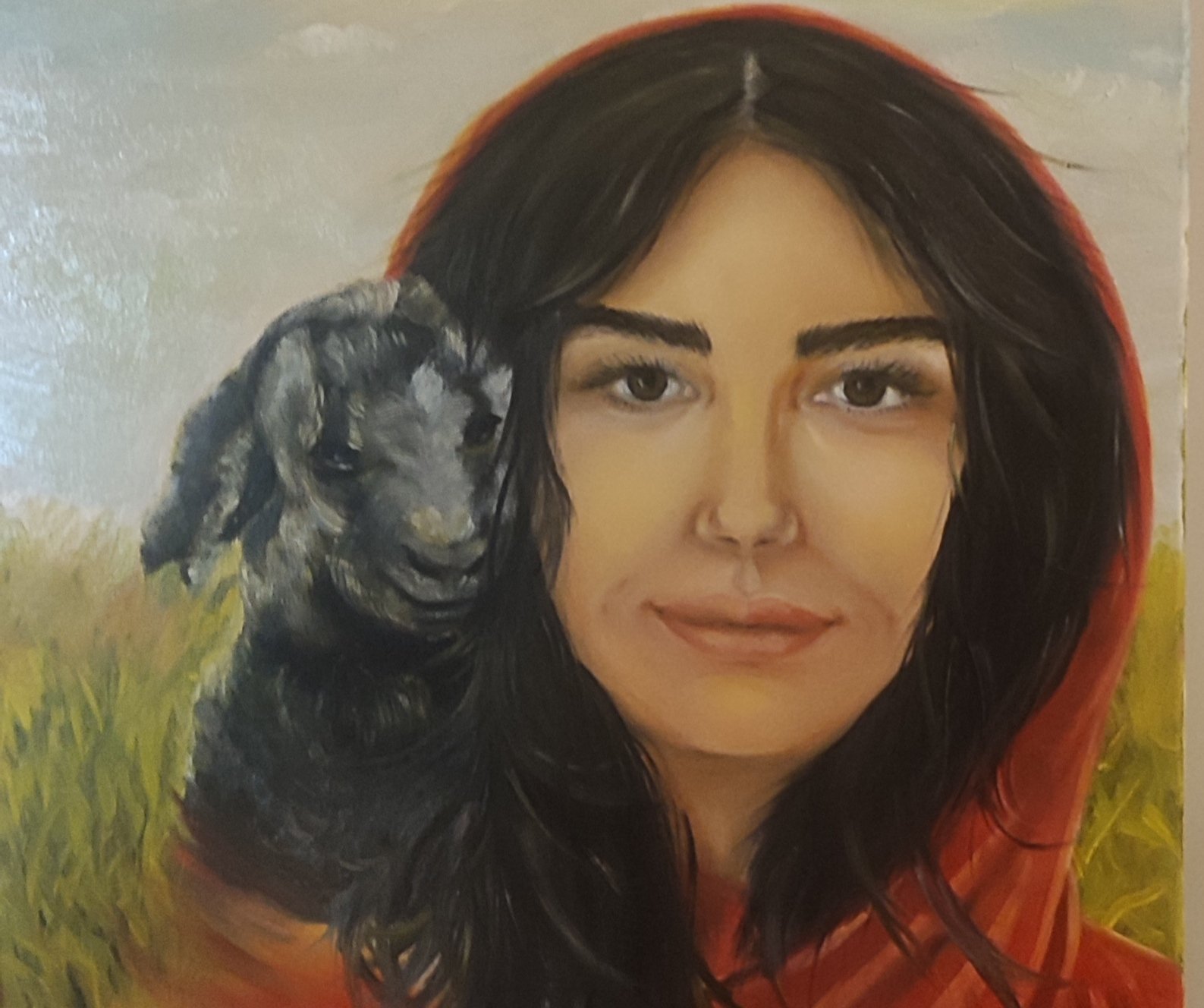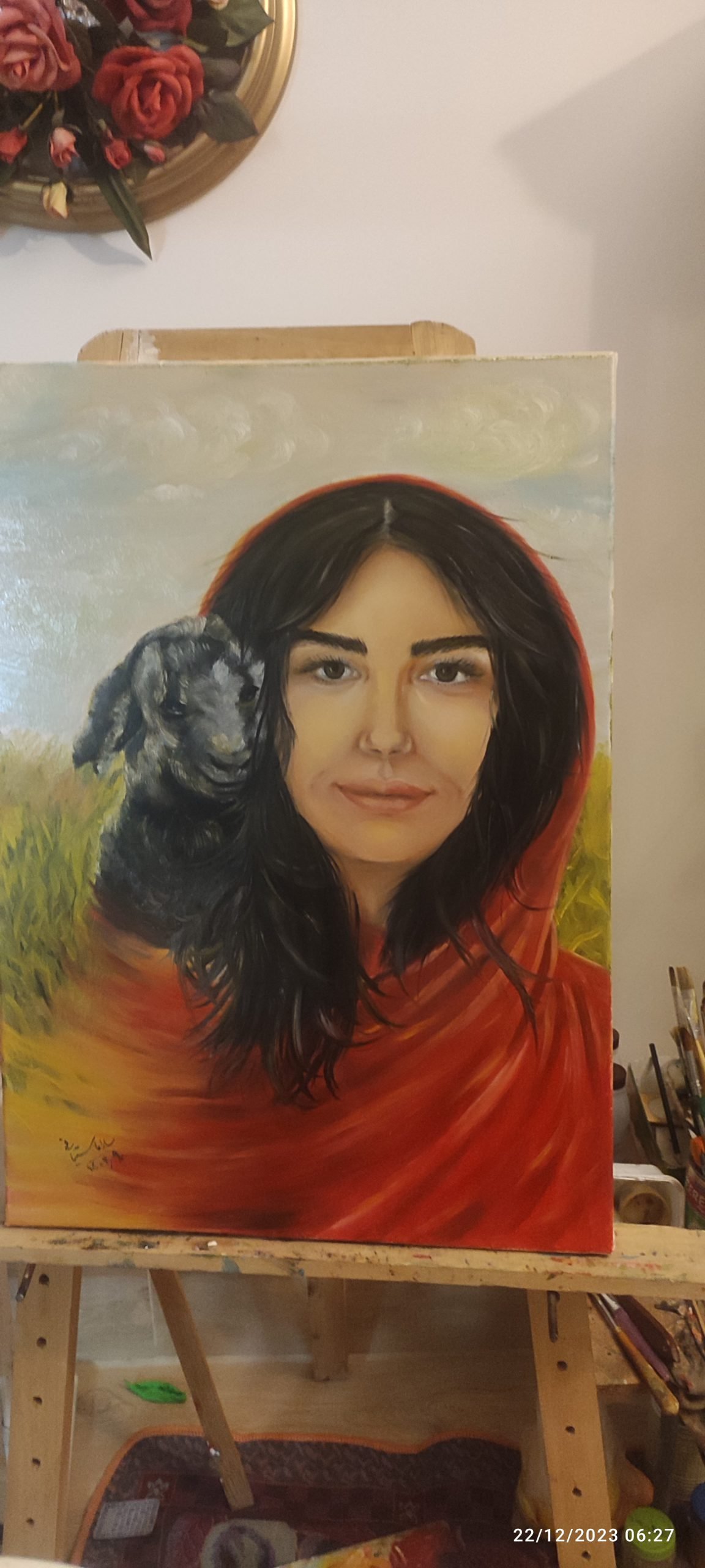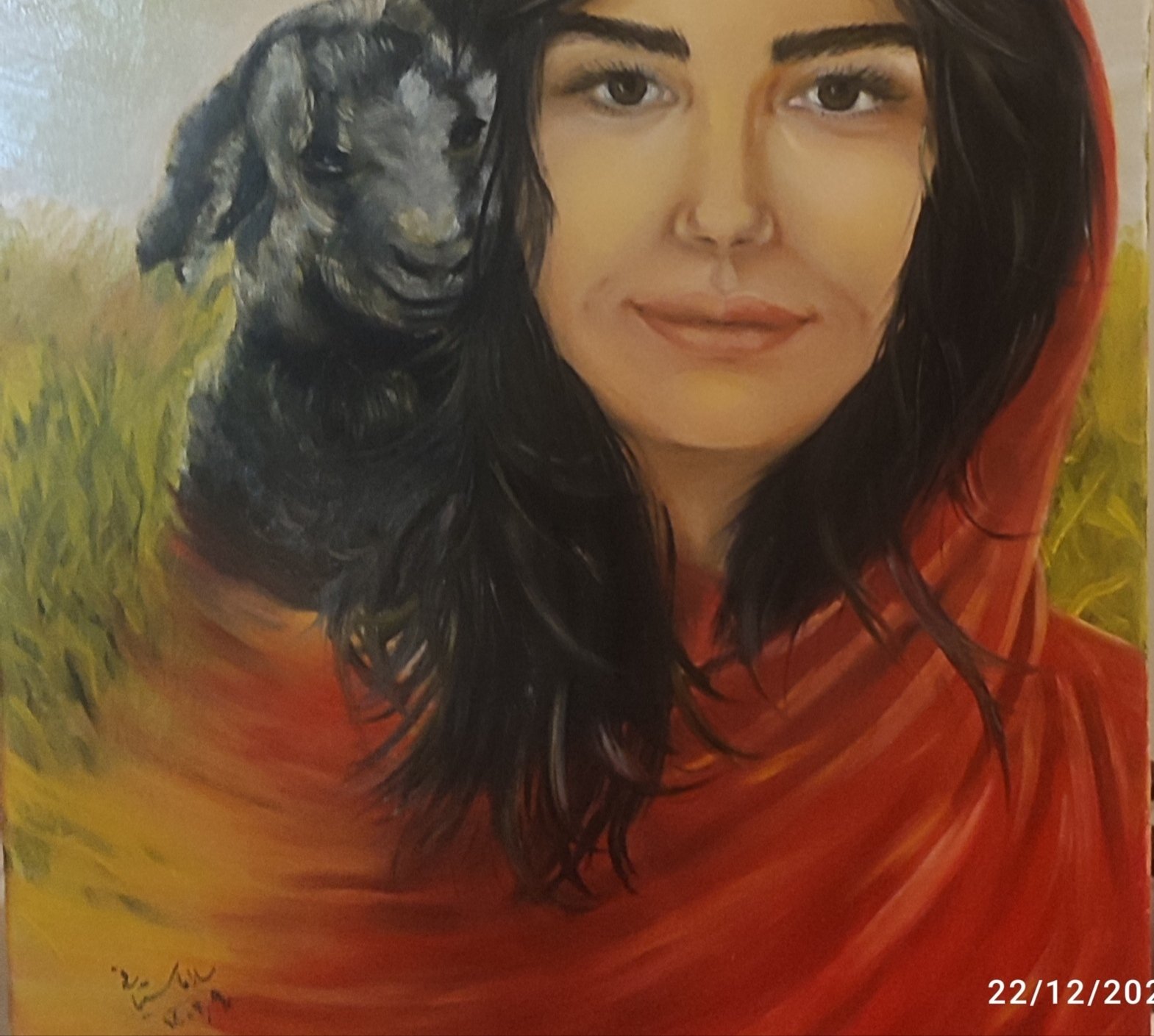 لوحة جميلة جداً تصور وجه فتاة كردية بشكل طبيعي وحيوي، وجمال اللوحة لا يظهر بوضوح في الصورة بسبب جودة التصوير المنخفضة.