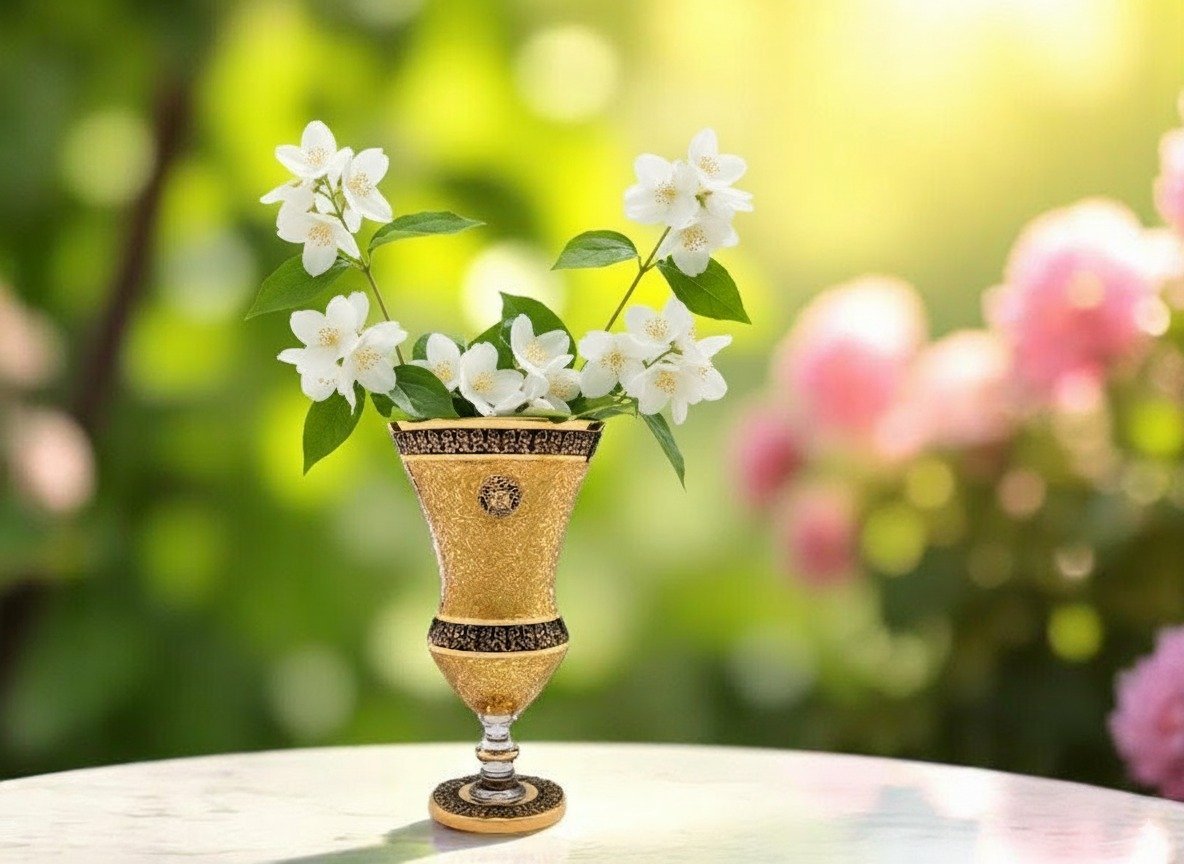 • التصميم المزخرف بالذهب عيار 12% الهولندي هو تصميم خاص وفاخر يمنح الإناء مظهرًا مذهلاً ويجعله قطعة فنية.